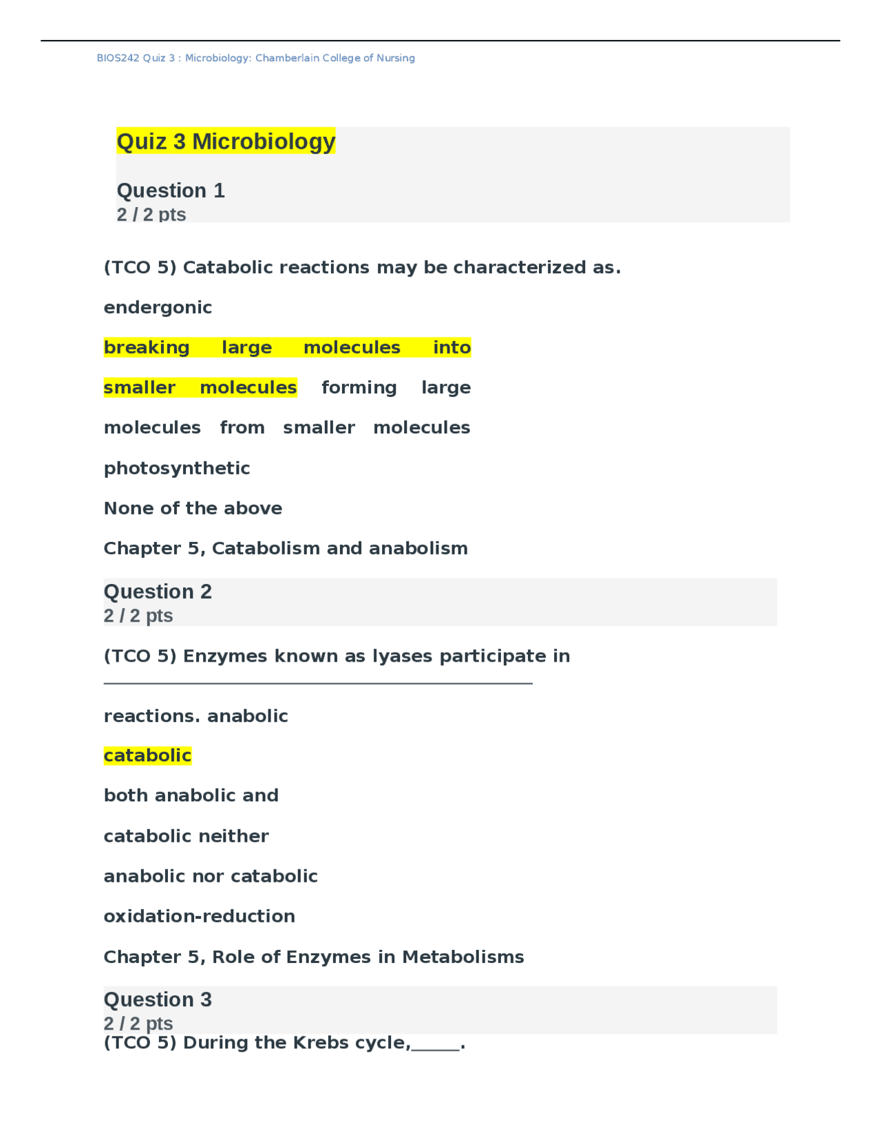 Bios242 Quiz 3 Microbiology Chamberlain College Of Nursing 100 Correct Verified By Be Exams Biology Docsity