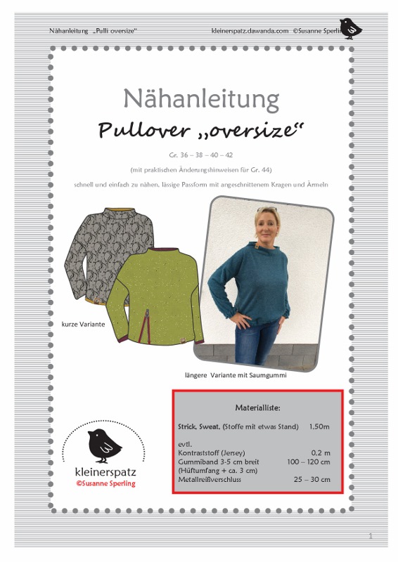 Nahanleitung Und Schnittmuster Pullover Sweat Oversize