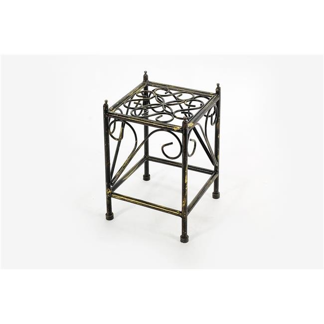 Ore International Small Lattice 13 In Black Gold Square Cast Metal Indoor Plant Stand Lb 1705b The Home Depot